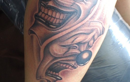 足 ふくらはぎ 蛇 般若 面 面散らし お面 刺青 般若面 カラーのタトゥーデザイン タトゥーナビ