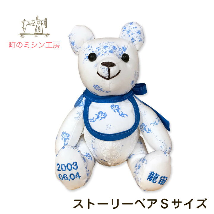 楽天市場 思い出の服をぬいぐるみに ストーリーベアsサイズ 体長約cm 座高15cm リメイク リフォーム リメーク ぬいぐるみ テディベア ベビー服や産着など 日本製 送料無料 町のミシン工房
